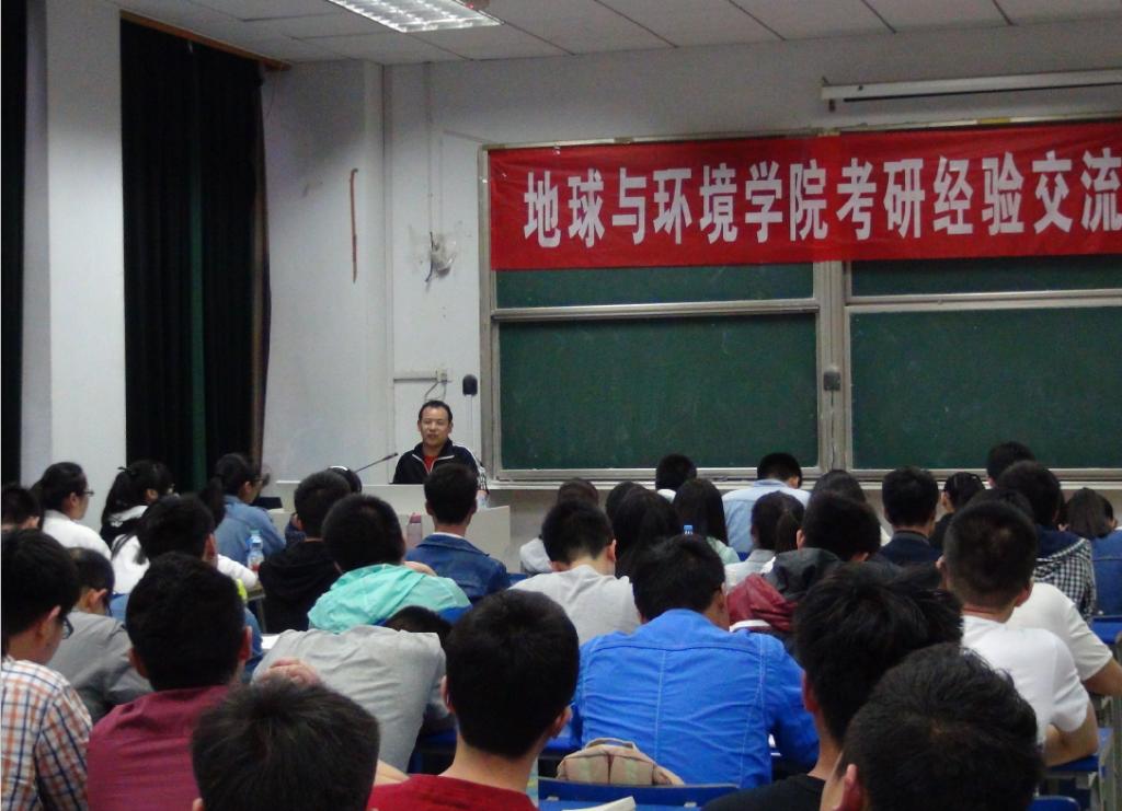 交流会上,考取研究生的2012级同学李乐乐(南京大学)、丁安心(北京师范大学)、舒生茂(华中科技大学)、王恒(吉林大学)、戴金旺(河海大学)、陶杨(上海理工大学)与同学们分享了考研心得与经验体会。六位同学分别从自身考研的经历谈起,从备战考研的艰辛,到最终取得成功的喜悦,从各科目的复习方法上分享了自己的经验和考研路上的心灵感悟,鼓励2013级考研同学坚定决心,走好自己的考研之路。他们精彩的发言赢得了同学们的阵阵掌声。交流会上同学纷纷提问,与学长互动,咨询考研的相关事项,现场气氛热烈。