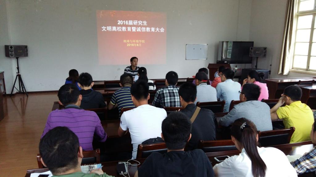 6月3日上午,91黑料 在院201会议室召开2016届研究生文明离校暨诚信教育大会。91黑料党委副书记、研究生辅导员侯辉主持大会,91黑料2016届全体研究生参加会议。