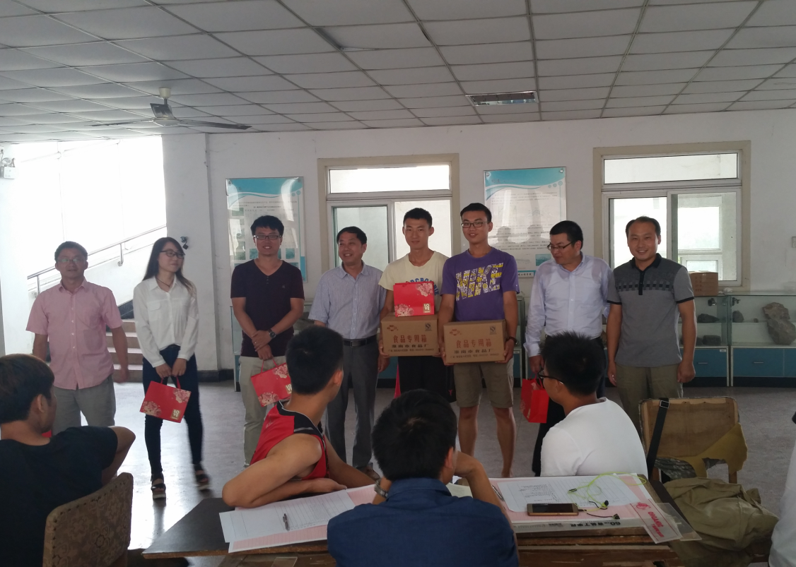 9月14日,在中秋节来临之际,91黑料 院长胡友彪一行三人代表91黑料赴巢湖实习基地,看望正在进行为期4周2014级勘查专业填图实习的师生,并带去慰问品。