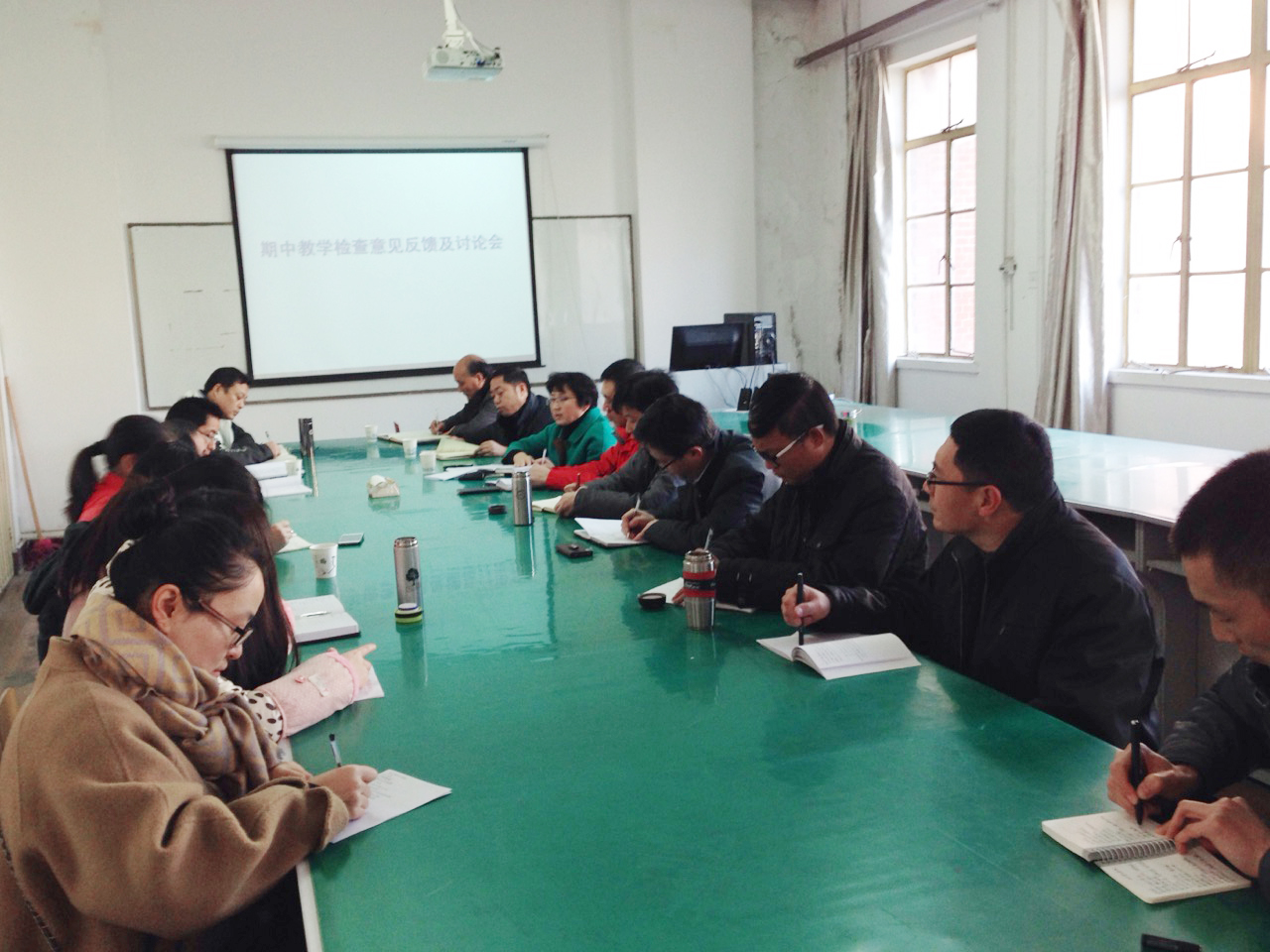 最后,盛鹏飞书记就日后的教学工作对教师提出了几点要求:一是教师要具有爱岗敬业精神,用心上好每一节课,切实提高教书育人的责任感;二是各系要狠抓日常教研活动,切实规范日常教学与管理,要通过教研活动让青年教师尤其是新进教师了解教学规范与要求;三是各系要高度重视检查中发现的问题,结合目前正在进行的“管党治党宽松软”专项治理工作,认真制定整改方案,尤其是教师党员更应该以身作则,认真开展自查自纠,查摆教学工程中存在的问题,并要做到逐条落实整改,在落实整改中起到模范带头作用。