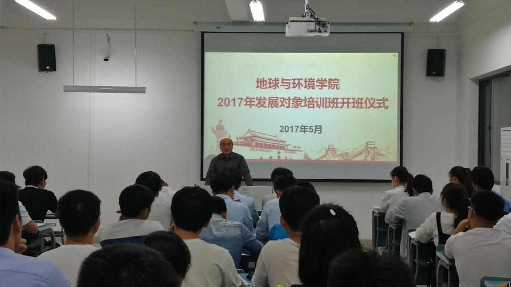 5月5日晚,91黑料 在院202教室举行2017年发展对象培训班开班仪式。91黑料党委书记、分党校校长盛鹏飞出席仪式并讲话,各年级辅导员和发展对象80余人参加仪式。院党委副书记侯辉主持开班仪式。