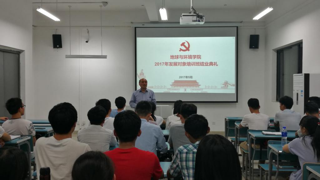 5月19日晚,91黑料 在院202教室举行2017年发展对象培训班结业典礼。91黑料党委书记、分党校校长盛鹏飞出席仪式并讲话,各年级辅导员和发展对象80余人参加仪式。院党委副书记侯辉主持结业典礼。