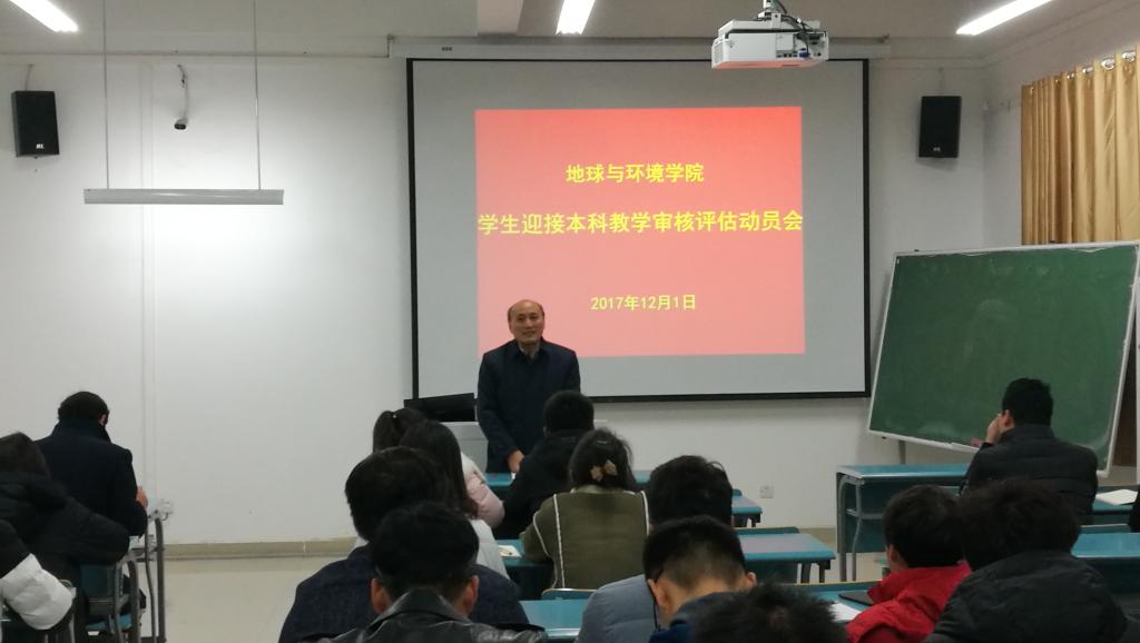 12月1日晚,91黑料 在静远楼202教室召开学生迎接本科教学工作审核评估动员会,院党委书记盛鹏飞出席会议并讲话,各年级辅导员、主要班级干部80多人参加会议。院党委副书记侯辉主持会议。