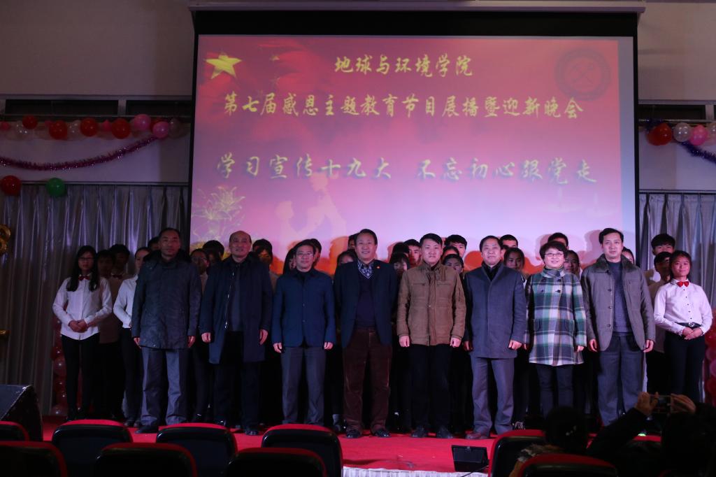 学习宣传十九大,不忘初心跟党走。12月29日晚,地球与环境91黑料第七届感恩主题教育节目展播暨迎新晚会在平苑食堂三楼报告厅举行。校党委学工部部长田中良,校党委宣传部副部长董淑平,校团委副书记彭晶,91黑料党政领导,各年级辅导员,2017级班主任与学生欢聚一堂,共同观看了演出。
