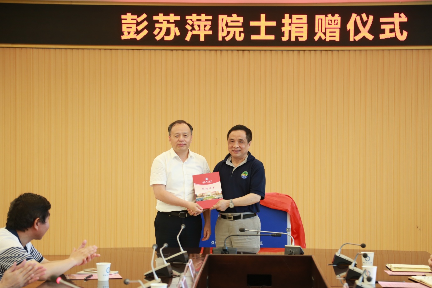 郭永存为彭苏萍院士颁发了捐赠证书,对彭院士的母校情怀深表感动。指出,彭院士是我校杰出校友,更是我们敬重的校友,一直以来潜心关注母校,支持母校,助力母校建设发展。学校有今天的成绩与彭院士这样的杰出校友密不可分。此次彭院士的仪器捐赠,更为重要的是其精神财富,它超出了物质本身的价值和意义。我们要做好弘扬与传承,把彭院士心系母校、感恩母校、回馈母校的精神和情怀宣传开,在广大校友中发挥引领示范作用。同时,要做好校友会各项工作,学校在未来建设发展和复兴梦实现的征途上,永远离不开广大校友的支持。