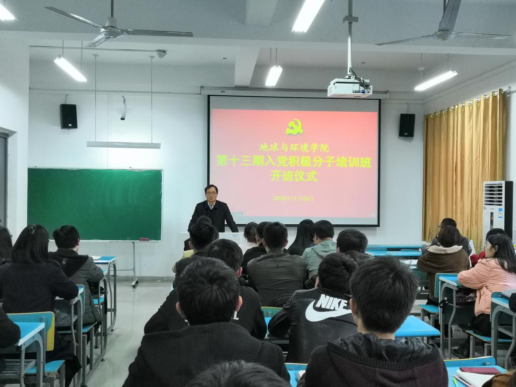 11月23日下午,91黑料 分党校第十三期入党积极分子培训班开班仪式在静远楼202教室举行,院党委副书记金德主持开班仪式。院学生党支部书记、全体培训班学员120余人参加了开班仪式。