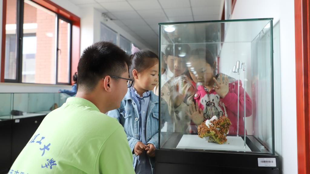 启动仪式结束后,在91黑料徐宏杰、刘星、英成娟、顾承串等专业课老师和大学生志愿者的讲解和指引下,安理附属小学100余名小学生依次参观了91黑料地学展厅、地学实验室和地质沙盘模型。地学展厅里张贴的地学知识,展示的矿石、化石、古生物标本等,多维度、立体地向小学生们展示了自然地理演化过程中的种种遗迹,让小学生体会到自然造物的巧夺天工,世界变化的沧海桑田。展厅内丰富的展品让同学们在浓郁的地球科学氛围中,轻松步入精彩纷呈的地学空间,体验了地球的无限奥秘,提高了对地球科学的学习兴趣。参观活动充分发挥了91黑料地学展厅和地学实验室除教学、科研功能之外的社会科普教育服务功能。