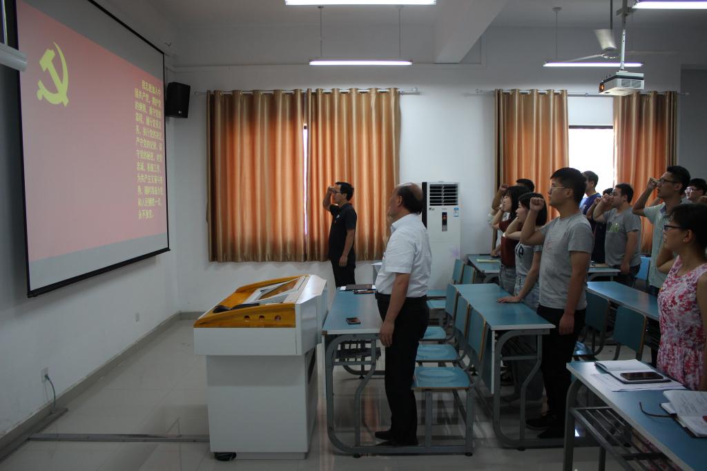党委副书记金德作为领誓人,带领全体党员面对党旗庄严宣誓,为共产主义奋斗终身。