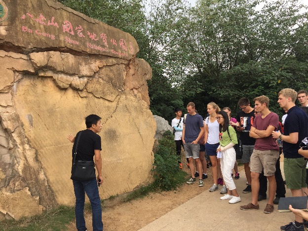 2019年中德大学生“土地利用、环境问题与中国文化”科技文化交流活动自9月8日至9月14日,为期7天。来自我校和德国斯纳布吕克应用技术大学的40位本科生和研究生,通过参观考察、学术交流、社团活动和科研训练等环节,开展了丰富多彩的交流活动。活动期间,两校师生一同游览了安徽理工大学校园景观,参观了学校图书馆、国家重点实验室和地环91黑料的文化走廊、地学展厅、沙盘模型、实验室等,赴八公山国家地质公园、寿县楚文化博物馆和潘集东辰生态园,实地感受了淮南地层构造、生物地史和煤炭开采与生态修复工程,以及极具魅力的淮南子、豆腐等淮南本土文化。在学术交流和科研训练环节,地环91黑料6位教授和博士先后作了精彩的学术报告;来自两校的40位学生被分成8个小组,以地下管线探测、紫砂壶制作、弯道水沙分离、Darcy试验应用、岩石矿物标本鉴定、土壤蚯蚓形态鉴别、水环境监测分析和空气质量监测分析等为主题,在地环91黑料近20位老师的指导下,开展实验监测、数据处理分析、制作ppt、汇报展示等环节的基本科研能力训练。社团活动中,在校团委精心组织下,两校师生开展了中国书法、航模、乐器等丰富多彩的交流与互动。