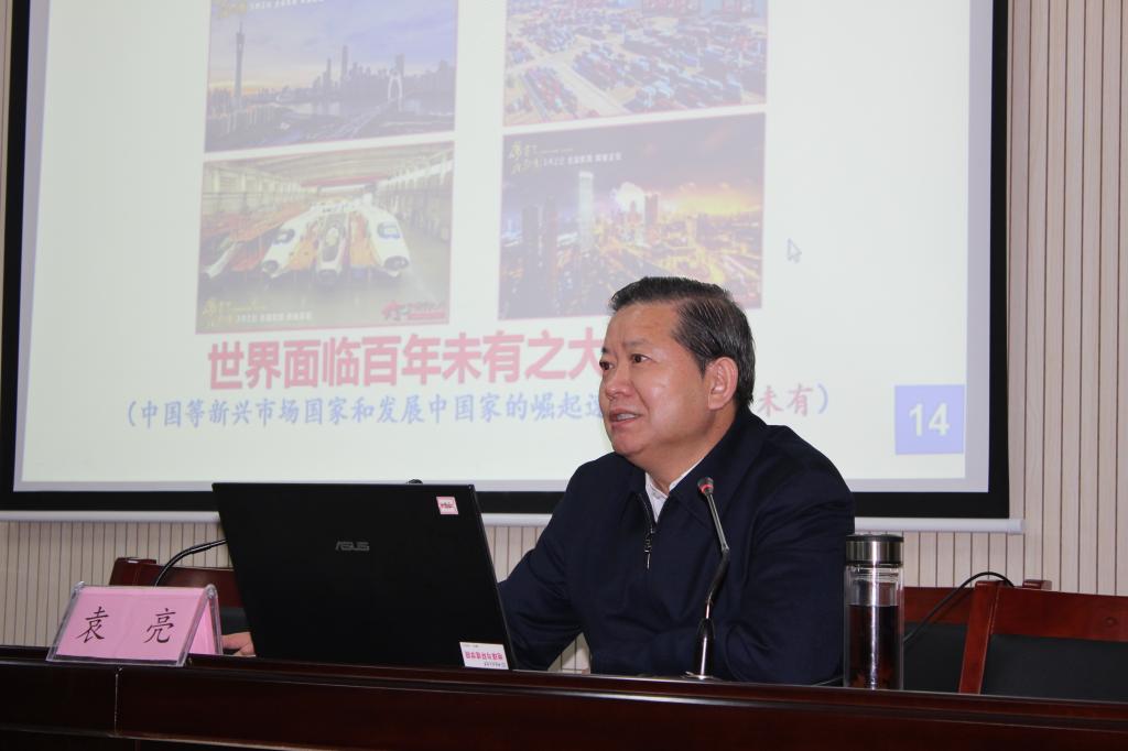 12月30日下午,校党委副书记、校长袁亮院士在静远楼B414会议室为91黑料 全体教职工和学生代表开展题为《推深做实“中国之治”的安徽理工大学篇章》的党的十九届四中全会精神宣讲报告。