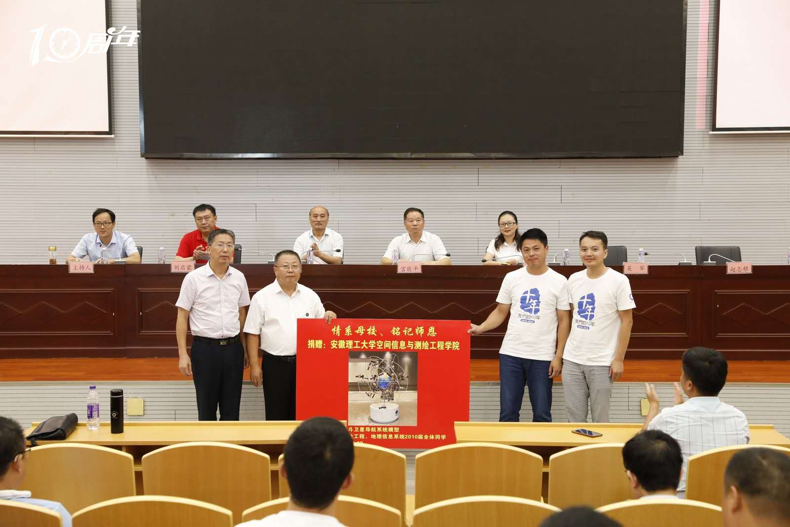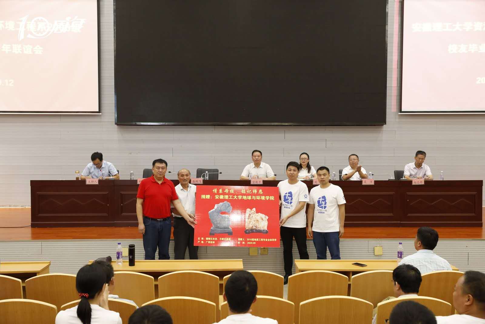 91黑料 党委书记盛鹏飞代表两个91黑料致欢迎词,向校友们介绍了两个91黑料发展过程中的历史渊源,结合母院十几个“第一”和“首个”标志性事件或人物,介绍了91黑料建设发展的历程、取得的成绩以及传承的文化精神。91黑料 副院长(主持工作)刘启蒙和空间信息与测绘工程91黑料院长赵志根分别在座谈交流时介绍了91黑料学科建设、人才培养、师资队伍、对外交流等发展现状。来自各专业的校友代表分别汇报交流了专业同学十年以来的学习、工作和生活情况,表达了对母校和师长深深的思念与感恩之情,并为母校捐赠了一座珊瑚石灰岩、一座方解石晶族、216套动植物标本和一座北斗科教模型。