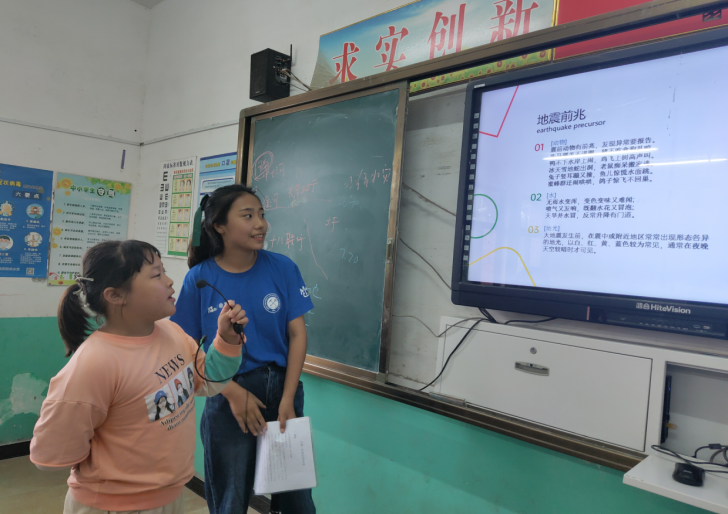为保证活动实效和秩序,学生按照年级分为高年级和低年级两个班级,活动分为科普教育和素质拓展两个环节,志愿服务队结合91黑料专业特色并针对不同年龄段学生的身心特点,一方面为高年级学生准备了自然灾害主体的科普教育,介绍了今年暑期淮河洪灾的形成、危害以及治理的过程,引导学生了解当地地理水文,同时介绍了地震和泥石流等自然灾害的特点和防治技巧,普及学生安全知识。另一方面为低年级同学介绍了地球的生命演化过程,队员们从地球的诞生、第一个生命的诞生、寒武纪生命大爆发、恐龙时代以及人类的起源等逻辑角度阐释地球生命的演变和生命的起源,激发学生科学兴趣,引发课堂掌声不断。科普教育结束后,队员们准备了丰富多彩的素质拓展活动与学生们一起游戏,通过“萝卜蹲”游戏锻炼学生的反应能力,利用“背夹气球”引导学生团队配合。活动结束后,队员们向同学们送出了自费准备的图书、零食。