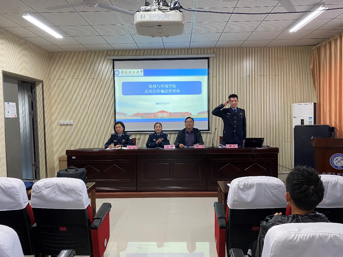 刘扬警官介绍了山南新区和安徽理工大学电信诈骗案件办理相关情况,提醒广大学生要树立正确的世界观、人生观、价值观,在思想根源上做好防范,杜绝麻痹心理。郑宇警官通过大量真实案例,以案说法,揭露了电信诈骗的常见作案手段,并在双十一来临之际,着重为同学们介绍了“退款骗局”、“到付骗局”、“免费骗局”、“代付骗局”、“卖家买家秀骗局”、“中奖骗局”、“仿红包骗局”、“假客服骗局”、“信用提额骗局”和“刷单返利骗局”十种有关购物骗局,并给出了有效应对策略。