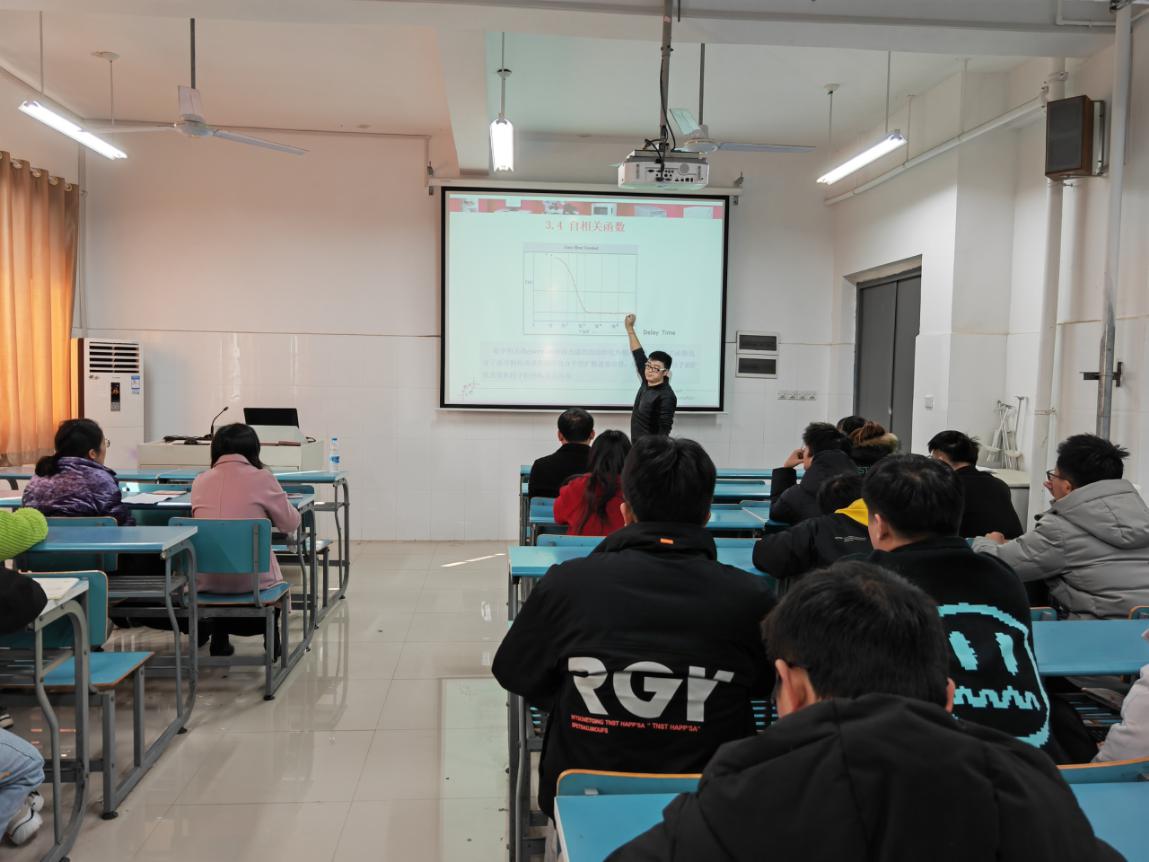 在静远楼A210多媒体教室,美国布鲁克(海文)仪器公司(仪器供应商)叶波高级工程师从光的散射原理讲解开始,深入浅出地为在场的师生详细介绍了仪器工作原理,详细的说明了仪器的功能,并逐一解答了在场师生们的提问。