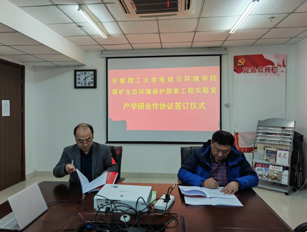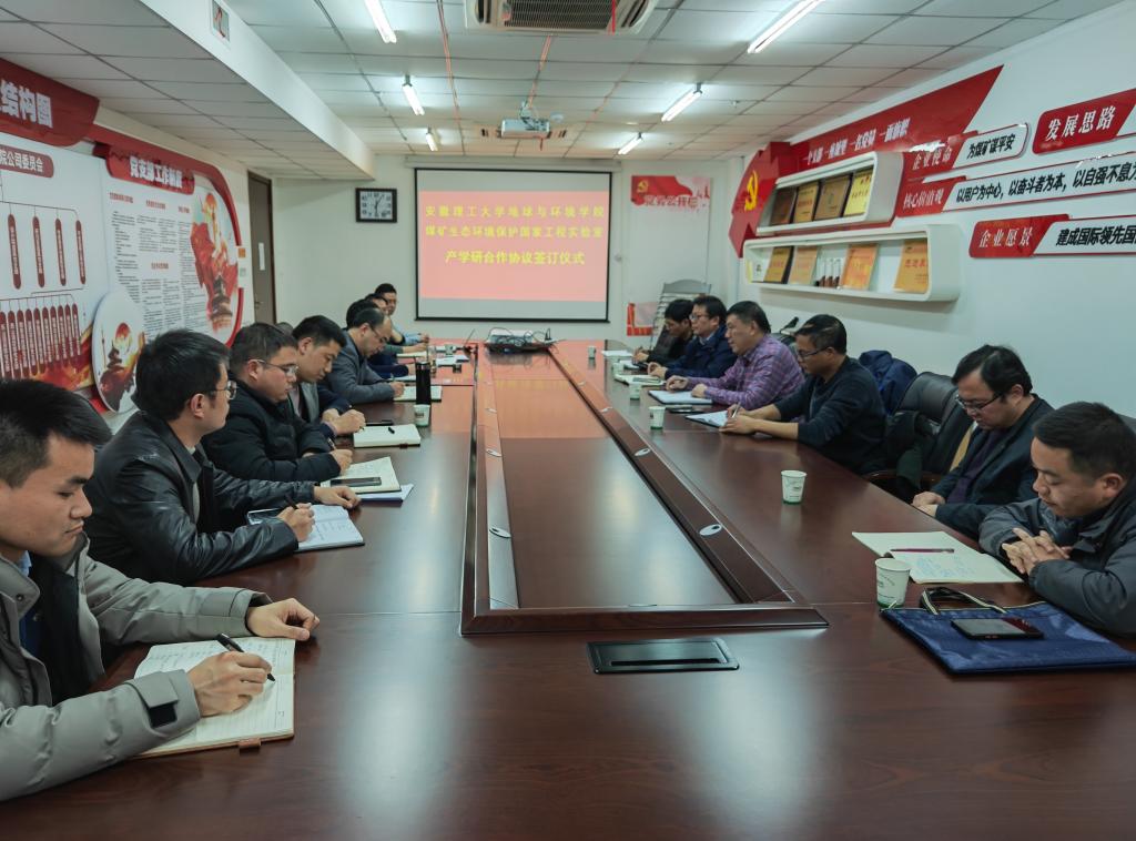 座谈交流环节,与会人员围绕非常规能源、废弃矿井资源再利用、矿井水综合利用、沉陷区生态环境治理、碳捕捉碳封存等方向的科研合作以及成果转化、项目申报及管理和大学生创新创业等方面进行了广泛且深入的交流,并达成初步合作意向。会后双方签订了产学研合作框架协议。