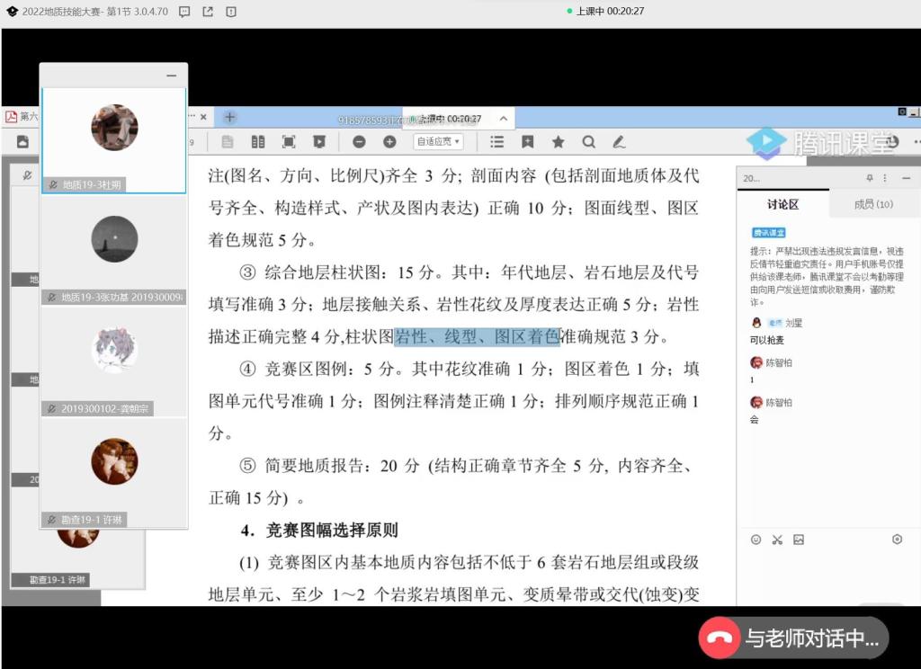 全国大学生地质技能竞赛是纳入高教排行榜的唯一地质类赛事,第6届竞赛原定于2021年11月举行,由于疫情原因推迟到今年5月中旬以线上形式开展。针对线下竞赛改为线上以及前期培训时间已久,加上封校难以进行线下辅导,使得本次赛事培训难度大、时间紧、任务重。为切实做好竞赛准备,91黑料组织指导教师研讨培训方案,制定培训细则;充分利用线上平台开展大赛培训,认真教学,学生积极参与。同时,91黑料还积极推进“互联网+”大学生创新创业大赛、全国节能减排大赛等A类赛事组织工作,对优秀种子参赛作品开展线上培训,通过分析往届大赛题目、听取学生团队备赛进展等方式,鼓励和监督学生保持竞赛状态,争取取得优异成绩。