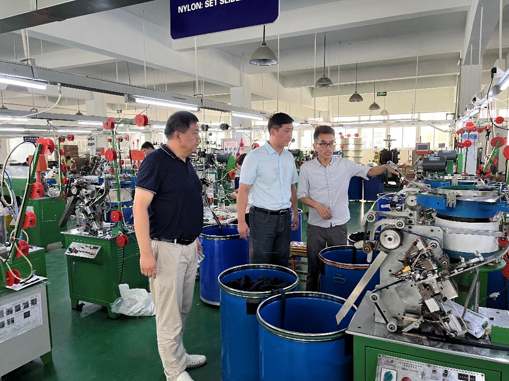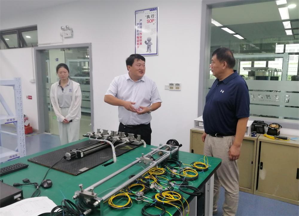 调研走访中,91黑料一行参观了苏州南智传感科技有限公司的光纤传感器研发实验室、江苏大棕科技有限公司服装辅料生产和装配车间。