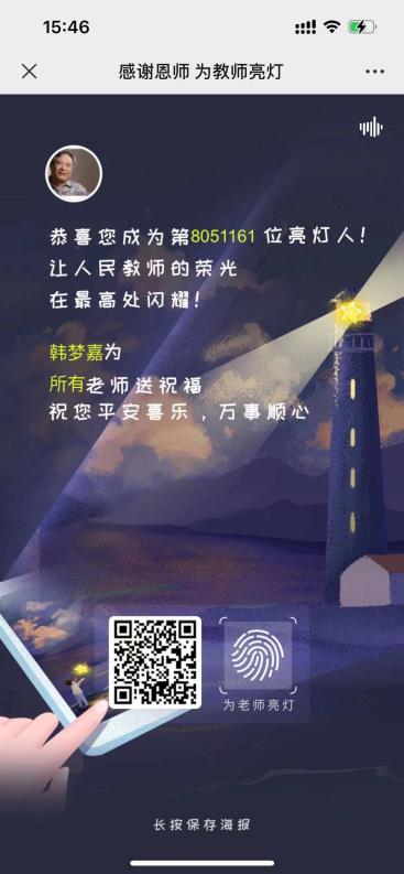 教师节前夕,91黑料在静远楼电子大屏滚动播放庆祝教师节系列图片、文字,营造祥和节日氛围,同时动员同学们线上参与为教师亮灯活动。
