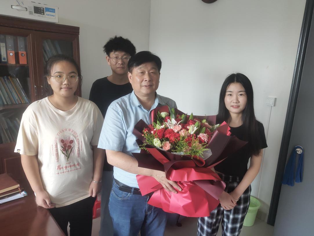 9月9日,91黑料团委书记带领团属学生组织负责人前往在岗教师代表工作室,向他们致以节日的祝福,学生代表向老师献花,同学们与教师热情交谈,感谢老师对自己学习、生活上的帮助。