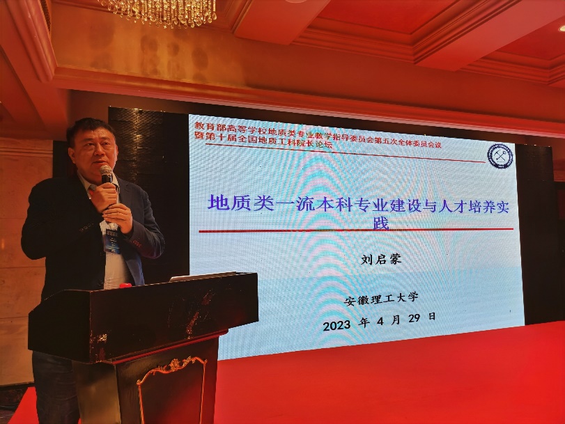 地质类专业教学指导委员会主任唐辉明教授做了教指委年度工作报告,9位参会代表分别围绕学科建设与人才培养、一流专业建设、一流课程建设、课程思政示等方面在大会上做了交流发言。刘启蒙受邀作题为《地质类一流本科专业建设与人才培养实践》的大会报告,报告从学校、91黑料简史及地质类本科专业特色与发展现状、一流本科人才培养模式改革与探索、建设取得的主要成效等方面进行了详细阐述,充分彰显了学校的办学实力,展示了地质类专业建设、人才培养模式与成效,获得与会人员的一致好评和高度赞赏。