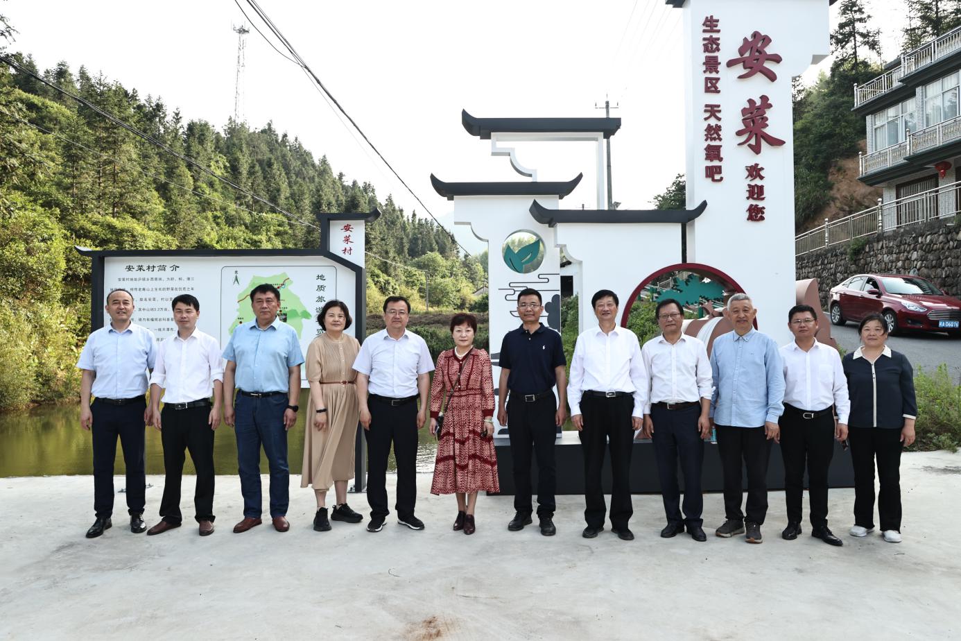 座谈会后,朱恒银教授、刘启蒙一行与其他与会专家一起,实地考察了庐镇乡文化广场、安菜榴辉岩科普基地、百丈崖瀑布,瞻仰了安莱烈士陵园,进一步感受了庐镇地质文化的独特魅力。