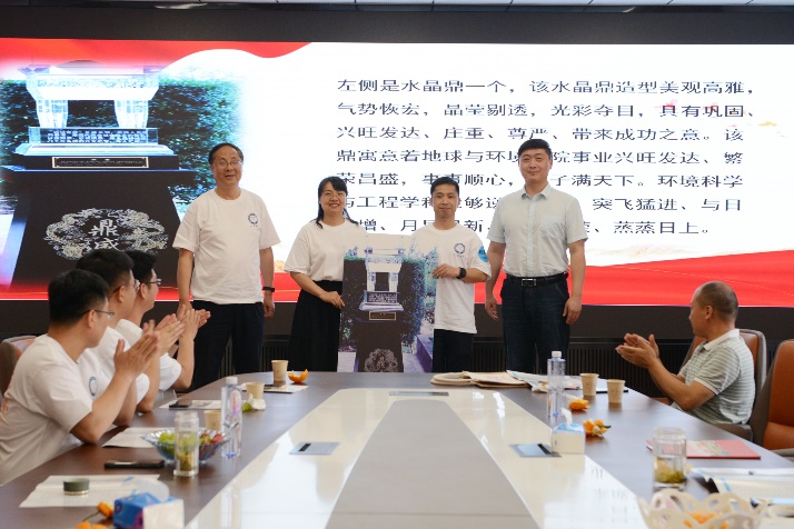 捐赠仪式上,ET实验室研究生校友向91黑料捐赠水晶鼎,表达对91黑料发展的美好期盼和祝福。