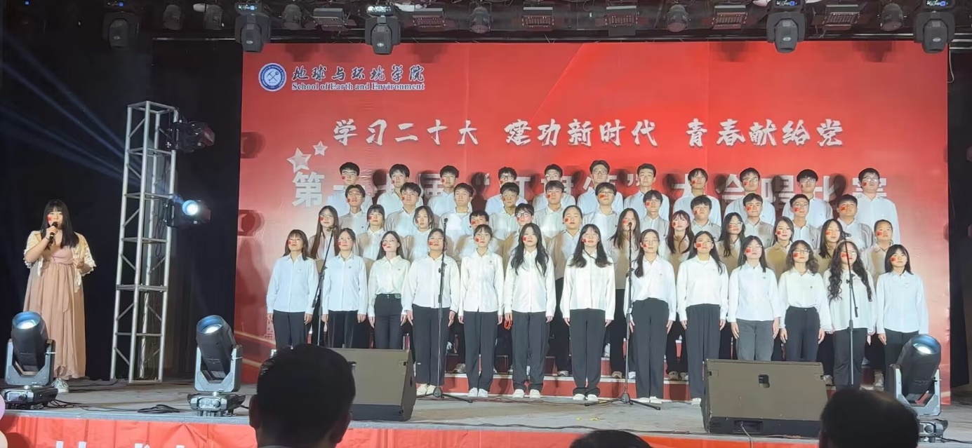 比赛在地质专业代表队合唱的《我的中国心》中拉开了帷幕,研究生第一代表队合唱的《大学无疆》展现了地环学子追求卓越、志存高远的宽广志向;勘查资勘专业代表队带来的《黄河大合唱:保卫黄河》歌颂中华民族的光荣历史和斗争精神;地质学生党支部代表队带来的《党旗飘扬的方向》书写党领导下的奋斗故事,不忘初心、牢记使命,用歌声赞美心中最坚定的信仰;环境专业代表队合唱的《万疆》满怀热情,饱含着对祖国的深沉热爱;给排水专业代表队的《少年中国说》,展现了少年对强国梦想的铮铮誓言;水科学学生党支部代表队的《我爱你中国》深情地诉说着心中绵绵不绝的挚爱,真诚地传达了地环学子对祖国的拳拳之心和深深眷恋;环境学生党支部代表队的《我和我的祖国》将“我”与“祖国”紧密相连,表达了由衷的民族自豪感;水文专业代表队带来《祖国不会忘记》唱出了奋斗者对祖国的承诺和信任;最后由研究生第二代表队带来的《歌唱祖国》表达了中华民族优秀儿女不忘初心、自强不息、继续前进的精神。