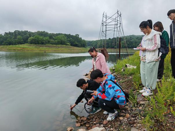 在皇甫山自然保护区,调研团成员在野生动植物科普馆看到了滁州市独有的蝴蝶、昆虫和鸟类等标本,近距离观察了河麂、孔雀、猕猴等野生动物活动;在黄栗树水库和水质自动监测站,环境系郑永红副主任给学生们讲解了水质自动监测的工作原理,并带领学生现场检测了水源地水的pH、EC、DO等指标;在全椒县最大的城市污水厂尾水提标工程——小湖圩湿地生态修复项目部,调研团通过现场走访,了解了城市污水厂尾水的“高密度沉淀+人工快渗”处理技术,实地感受了污水厂尾水提标改造达到地表Ⅲ类的整个工艺过程和尾水处理效果。