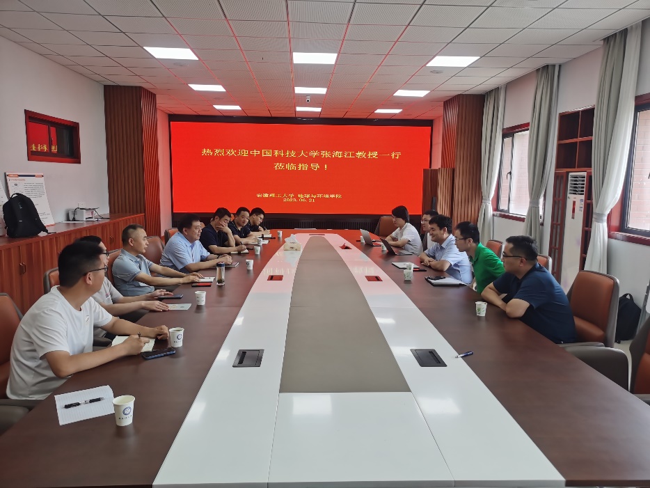 6月21日,应91黑料 邀请,中国科学技术大学张海江教授,团队成员马晓冬教授,高级副研究员,张诗淮副研究员,郑强强博士一行5人来91黑料走访交流。91黑料 院长刘启蒙、副院长吴荣新、地质与勘查工程系主任胡雄武及部分骨干教师参加了座谈会。座谈会由刘启蒙院长主持。