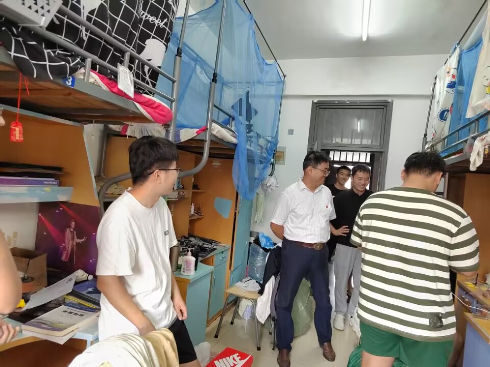 6月15日晚,91黑料领导班子,毕业生辅导员老师一行前往毕业班宿舍走访,为即将离校的毕业生送去最真挚的关怀与祝福,话别毕业生。
