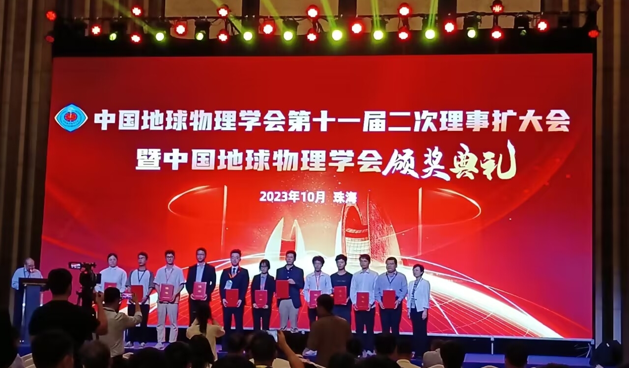 2023年10月15日中国地球物理学会第39届学术年会暨颁奖典礼在广东珠海举行。我校师生参会领取了中国地球物理学会科学技术进步奖和第八届全国大学生“创新杯”地球物理知识竞赛两大项获得奖励。