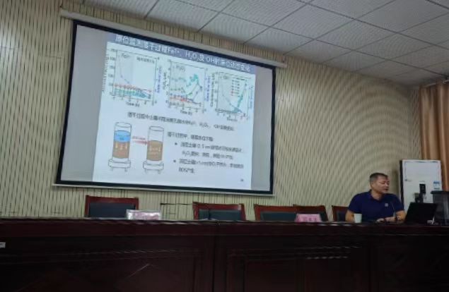 学术报告会上,周东美教授基于土壤环境化学多年的研究成果,从场地土壤和稻田系统土壤自由基过程与污染物转化两个方面展开报告。针对我国场地有机污染浓度高、种类多、危害大、修复难等突出问题,周东美教授领导的科研团队建立了场地土壤自由基表征技术体系,探讨了活性自由基高效产生及其降解污染物机制。针对稻田系统具有强烈的自由基过程特性,探讨了稻田上覆水光反应过程,干湿交替过程对自由基产生和土壤有机质矿化过程的影响。