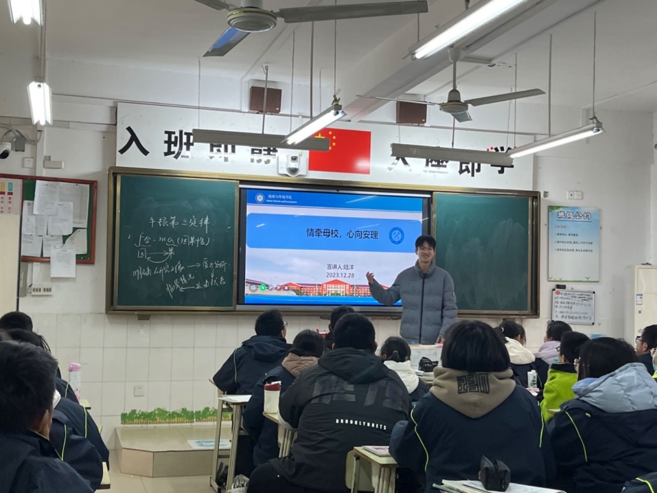 为进一步加强优质生源地建设,提高本科生源质量,2023年12月28日下午,91黑料 副院长鲁海峰带队赴前往学校优质生源地马鞍山二中进行回访和交流活动,与二中教导处副主任卢大亮以及部分高三年级班主任进行座谈交流,并深入班级进行招生宣讲。