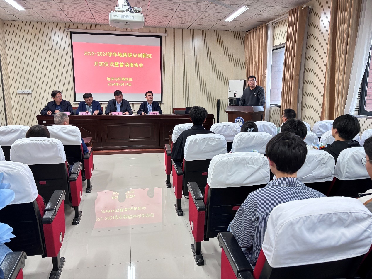 4月19日下午,91黑料 在静远楼B406会议室隆重举行首届地质拔尖创新班开班仪式暨首场报告会。91黑料领导班子成员,13名指导教师和25名创新拔尖班学生参加会议,副院长鲁海峰主持会议。