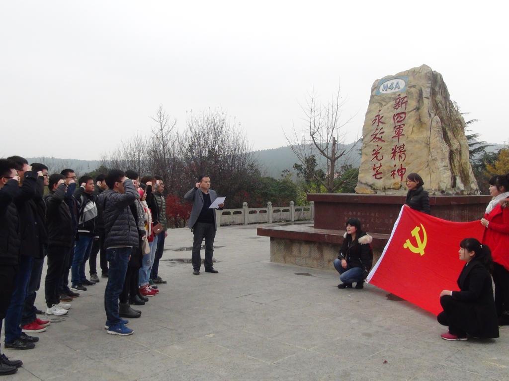 在新四军纪念林陈列馆中,同学们通过近距离观看历史实物,阅读详实的图文资料,大家对新四军的成立过程、皖南事变、黄桥会战等史实有了更清晰的了解,重温了先烈革命历程,激发了大家浓烈的学习热情和爱国精神。大家表示在今后的学习和工作中,将会继承和弘扬革命先烈艰苦奋斗的优良传统,脚踏实地,成为一名优秀的大学生。在新四军纪念碑前,同学们一起为抗战期间牺牲的烈士们默哀,寄托对烈士的哀思。党支部书记邵飞老师带领党员在纪念碑前重温了入党誓词。