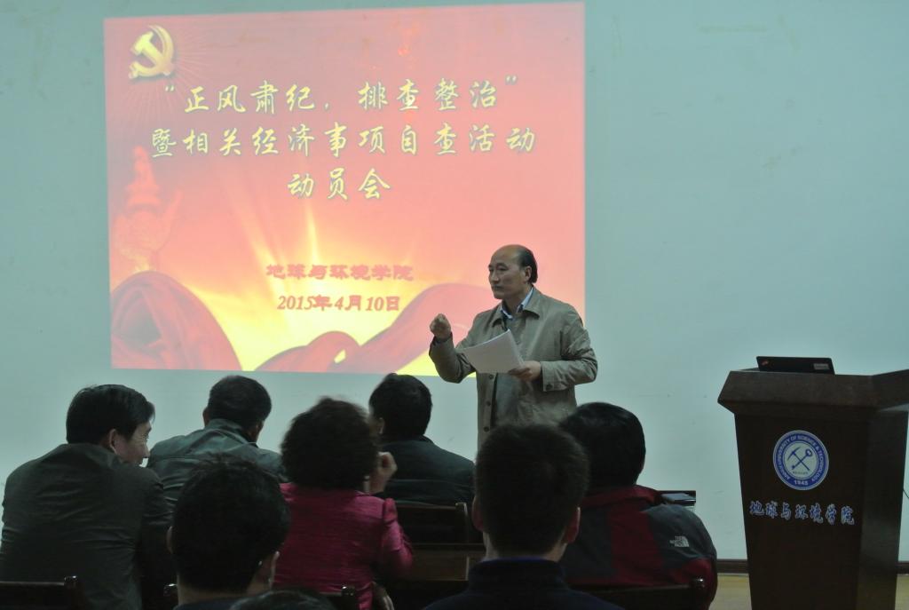 党委书记盛鹏飞传达了《安徽理工大学“正风肃纪 排查整治”专项行动实施方案》和《关于开展相关经济事项自查工作的通知》文件精神。他要求全体教职工要切实提高思想认识,强化责任意识,明确工作任务内容和时间节点,主动加强审计和财务知识学习,积极配合学校和学院开展“正风肃纪 排查整治”专项行动及相关经济自查工作。