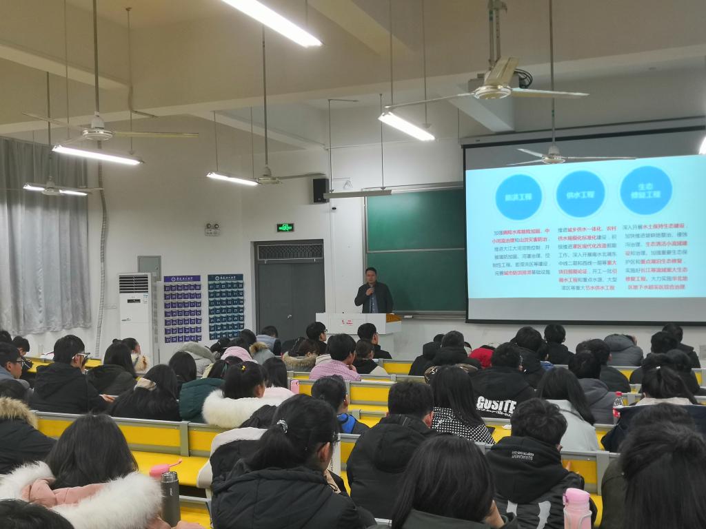 刘博士依次从学习经历、工作经历、行业发展以及研究领域四个方面向大家阐述自己的学习心得和行业发展动态。首先,刘博士用启蒙、觉悟、独立、成熟、担当等阶段描述了自己本科、硕士以及博士阶段的学习特征。随后,刘博士以自身在南京水利科学研究院的工作经历向大家分享了从学生向社会转变的心得。又从防洪工程、供水工程和生态修复工程三个方面介绍了专业未来的发展趋势。最后,刘博士向大家展示了近年来自己在专业领域内取得的一系列成果,同时回答了部分同学关于专业学习以及就业方面的疑惑。